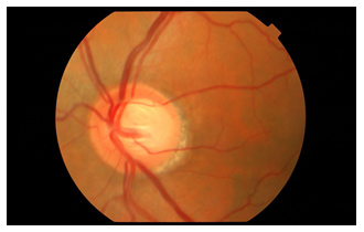 3) A depression is seen in the Optic Nerve Disc by fundus examination (Glaucomatous cupping)